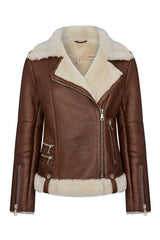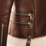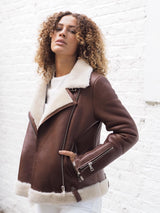 Shearling leather pilot jacket in brown