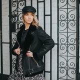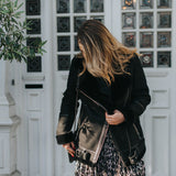 Our women's aviator jacket is the cover stars to complete any outfit. Give your look modern coolness in no time at all. The casual cut gives a sporty but at the same time sophisticated touch.What make our Oversized Aviator jacket so special is its superfine suede leather and thoughtful details.